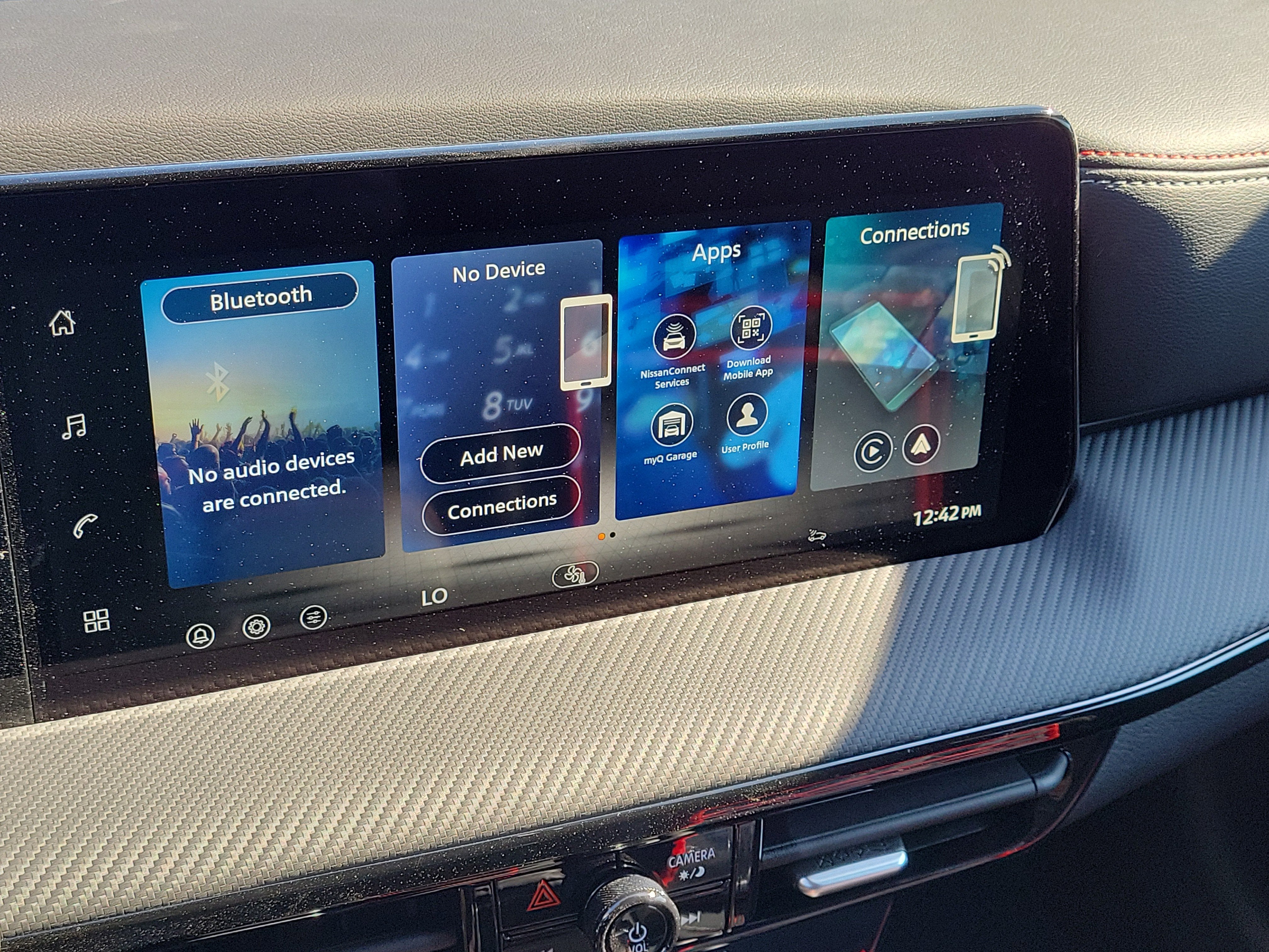 - Radio: AM/FM/SiriusXM Audio System -inc: 12.3" color touchscreen display w/6 speakers, Bluetooth® hands-free phone system, streaming audio via Bluetooth®, NissanConnect Services powered by SiriusXM featuring wireless Apple CarPlay, wireless Android Auto, Siri eyes free and hands-free text messaging assistant, audio and Bluetooth® steering wheel switches and Wi-Fi hotspot