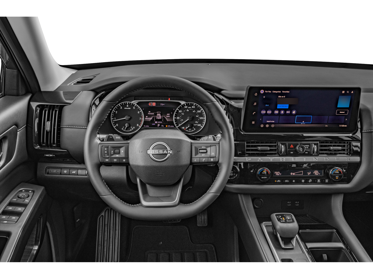 - Radio: AM/FM Audio System w/NissanConnect -inc: 6 speakers, 5G Wi-Fi hotspot, wireless Apple CarPlay and Android Auto, 12.3" center touch-screen display, SiriusXM satellite radio, 2 front USB connection (1 type C charge and data ports), Bluetooth® hands-free phone system, streaming audio and messaging and hands-free text messaging assistant