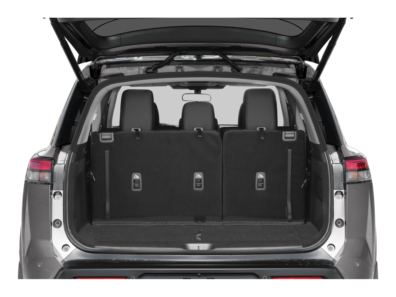 - Fixed 60-40 Bench Cloth 3rd Row Seat Front, Manual Recline, Manual Fold Into Floor, 3 Manual and Adjustable Head Restraints