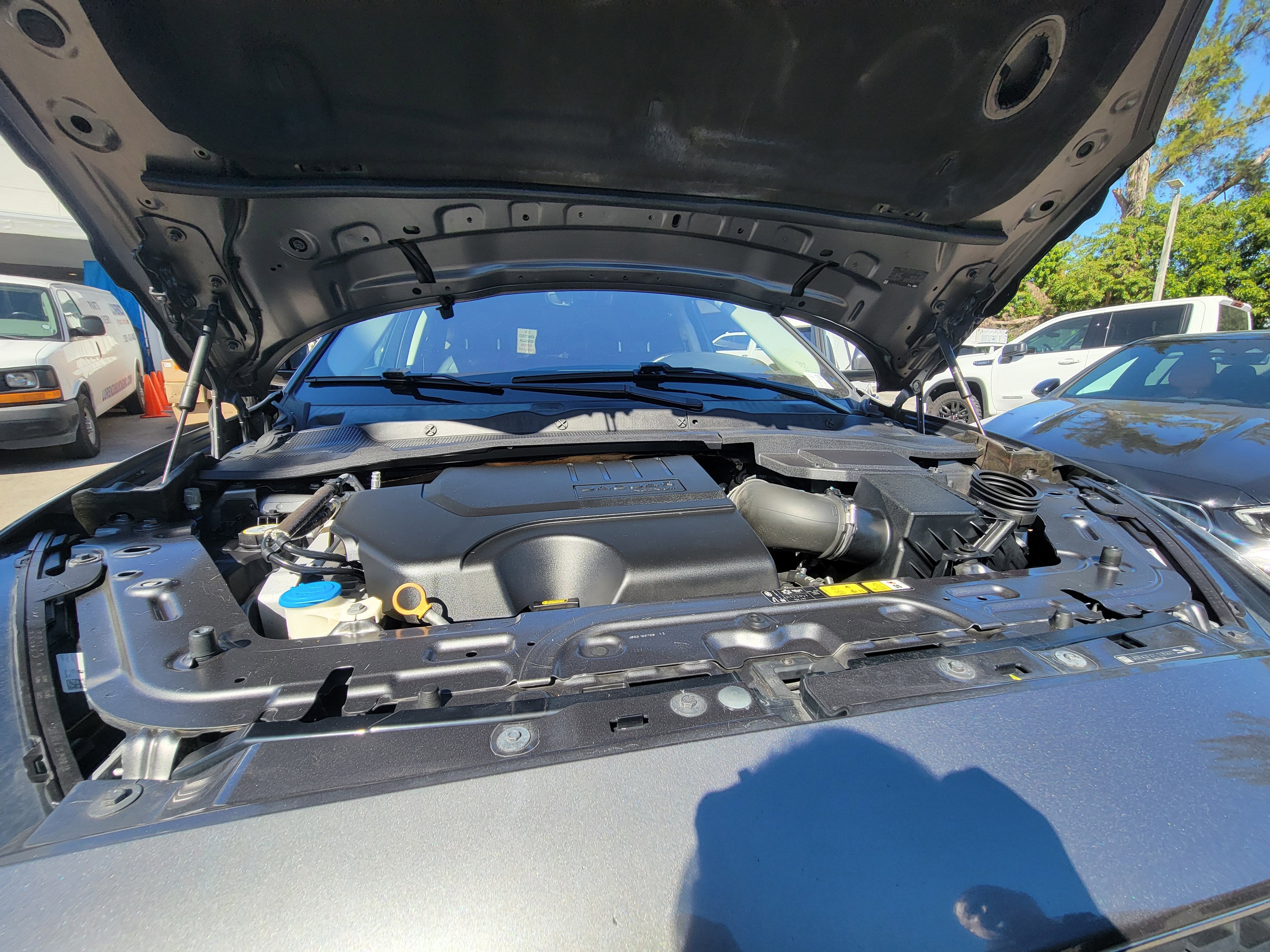 4D Sport Utility, 2.0L I4 Turbocharged, 9-Speed Automatic, AWD, Ebony/Ebony w/Grained Leather Seat Trim, 10-Way (8-Way Electric) Front Seats, 4-Wheel Disc Brakes, 4.54 Axle Ratio, 6 Speakers, ABS brakes, Air Conditioning, Alloy wheels, AM/FM radio, Apple CarPlay/Android Auto, Auto-dimming door mirrors, Auto-dimming Rear-View mirror, Automatic temperature control, Brake assist, Bumpers: body-color, Compass, Delay-off headlights, Driver door bin, Driver vanity mirror, Dual front impact airbags, Dual front side impact airbags, Electronic Stability Control, Emergency communication system: InControl Protect, Exterior Parking Camera Rear, Four wheel independent suspension, Front anti-roll bar, Front Bucket Seats, Front Center Armrest, Front dual zone A/C, Front reading lights, Fully automatic headlights, Grained Leather Seat Trim, Heated door mirrors, Illuminated entry, Leather Shift Knob, Leather steering wheel, Low tire pressure warning, Occupant sensing airbag, Outside temperature display, Overhead airbag, Overhead console, Panic alarm, Passenger door bin, Passenger vanity mirror, Power door mirrors, Power driver seat, Power passenger seat, Power steering, Power windows, Radio data system, Radio: Jaguar Sound System, Rain sensing wipers, Rear anti-roll bar, Rear fog lights, Rear reading lights, Rear seat center armrest, Rear window defroster, Rear window wiper, Remote keyless entry, Security system, Speed control, Speed-sensing steering, Split folding rear seat, Spoiler, Steering wheel mounted audio controls, Tachometer, Telescoping steering wheel, Tilt steering wheel, Traction control, Trip computer, Turn signal indicator mirrors, Variably intermittent wipers, and Wheels: 18" 9 Spoke Sparkle Silver. Recent Arrival! 21/28 City/Highway MPG