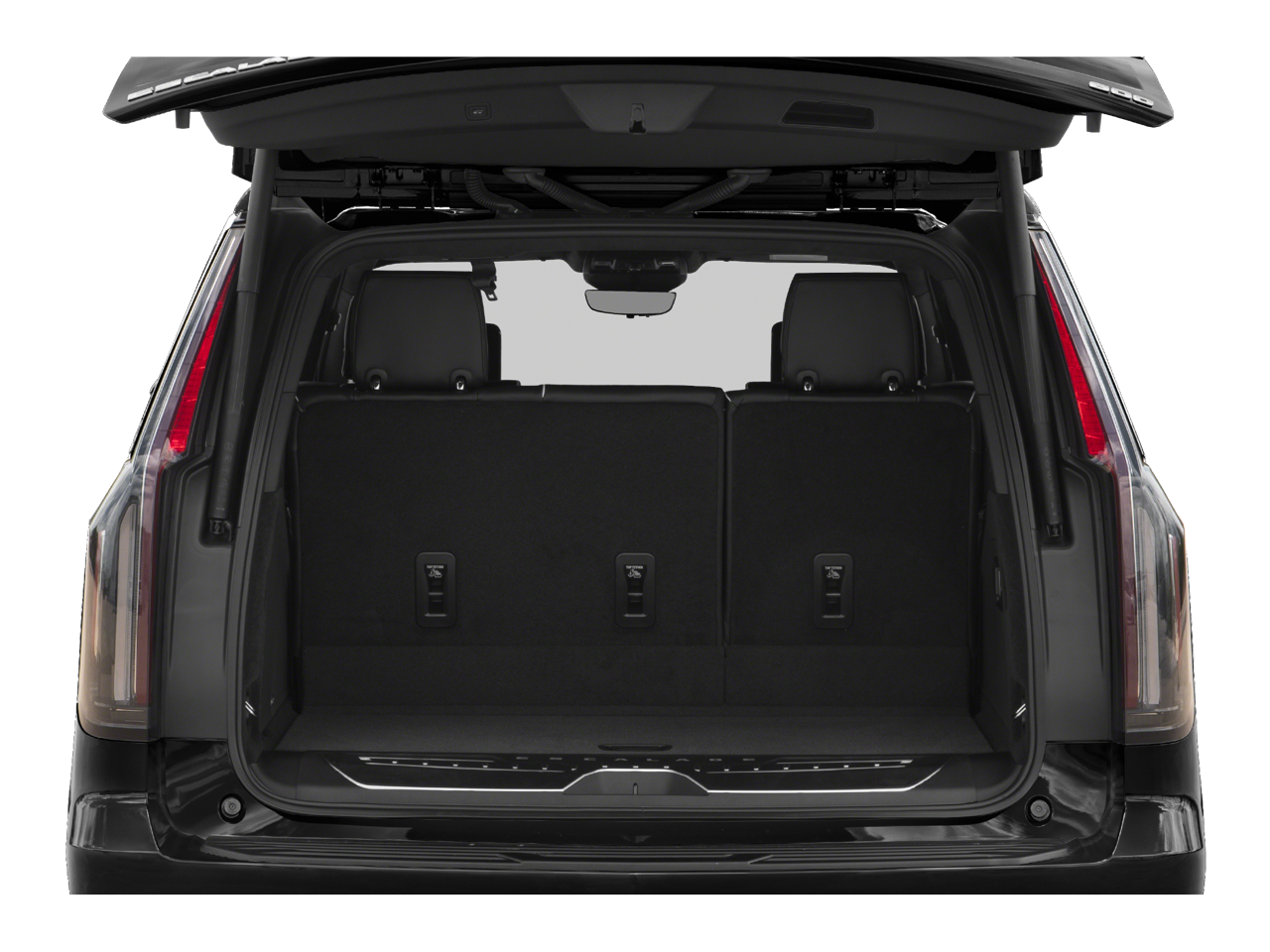 Driver Assist Tech Package (Adaptive Cruise Control, Air Ride Adaptive Suspension, Automatic Seat Belt Tightening, Enhanced Automatic Emergency Braking, Illuminating Front & Rear Sill Plates, Reverse Automatic Braking, and Soft Closing Front & Rear Doors), Preferred Equipment Group 1SC (Air Ionizer, AKG Studio 19-Speaker Audio System, Automatic Emergency Braking, Body-Color Door Handles, Door Lock & Latch Shields, Electronic Cruise Control w/Set & Resume Speed, Electronic Limited-Slip Differential, Enhanced Automatic Parking Assist, Glass Breakage Sensor, Hitch Guidance w/Hitch View, In-Vehicle Trailering System App, Integrated Trailer Brake Controller, Lane Keep Assist w/Lane Departure Warning, Power Panoramic Tilt-Sliding Sunroof, Rear Camera Mirror, Rear Camera Mirror Washer, Rear Cross Traffic Alert, Reconfigurable Full-Color Head-Up Display, Running Board Assist Steps, Theft-Deterrent Alarm System, Trailer Side Blind Zone Alert, Vehicle Inclination Sensor, and Vehicle Interior Movement Sensor), Black Leather, 16.9" Diagonal OLED Infotainment Screen, 19 Speakers, 2-Presets Memory For Driver Seat Adjuster, 3.23 Axle Ratio, 3rd row seats: split-bench, 4-Way Power Driver Lumbar Seat Adjuster, 4-Way Power Front Passenger Lumbar Seat Adjuster, 4-Wheel Disc Brakes, 8-Way Power Driver Seat Adjuster, 8-Way Power Front Passenger Seat Adjuster, ABS brakes, Adaptive suspension, Air Conditioning, Alloy wheels, AM/FM radio: SiriusXM with 360L, Apple CarPlay/Android Auto, Audio memory, Auto High-beam Headlights, Auto tilt-away steering wheel, Auto-dimming door mirrors, Auto-dimming Rear-View mirror, Automatic temperature control, Brake assist, Bumpers: body-color, Compass, Delay-off headlights, Driver door bin, Driver vanity mirror, Dual front impact airbags, Dual front side impact airbags, Electronic Stability Control, Emergency communication system: OnStar and Cadillac connected services capable, Four wheel independent suspension, Front anti-roll bar, Front Bucket Seats, Front Center Armrest w/Storage, Front dual zone A/C, Front reading lights, Fully automatic headlights, Garage door transmitter, HD Radio, Heads-Up Display, Heated & Ventilated Driver & Front Passenger Seats, Heated door mirrors, Heated Driver & Front Passenger Seats, Heated front seats, Heated rear seats, Heated steering wheel, Illuminated entry, Leather Seating Surfaces w/Precision Perf Inserts, Leather steering wheel, Low tire pressure warning, Magnetic Ride Control Suspension, Memory seat, Navigation System, Occupant sensing airbag, Outside temperature display, Overhead airbag, Overhead console, Panic alarm, Passenger door bin, Passenger vanity mirror, Power door mirrors, Power driver seat, Power Liftgate, Power moonroof, Power passenger seat, Power steering, Power windows, Radio data system, Radio: AM/FM/SiriusXM w/Navigation, Rain sensing wipers, Rear air conditioning, Rear anti-roll bar, Rear reading lights, Rear window defroster, Rear window wiper, Remote keyless entry, Roof rack: rails only, Security system, SiriusXM w/360L, Speed control, Split folding rear seat, Spoiler, Steering wheel memory, Steering wheel mounted audio controls, Tachometer, Teen Driver, Telescop