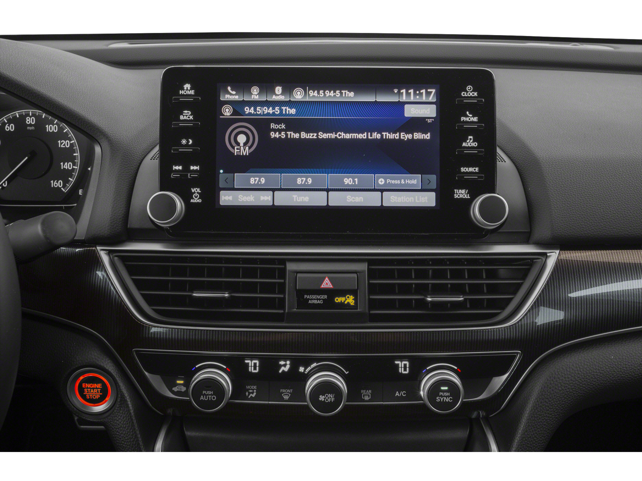 - Radio: 180-Watt AM/FM Audio System -inc: 8 speakers, 8" display audio w/high-resolution electrostatic touch-screen, knobs and hard keys for primary controls and customizable feature settings, Bluetooth HandsFreeLink, Bluetooth streaming audio, SMS text message function, Radio Data System (RDS), Speed-Sensitive Volume Compensation (SVC), HondaLink, Apple CarPlay integration, Android Auto integration, 2 2.5-amp USB smartphone/audio interface ports in front console, 2 2nd-row 2.5-amp USB charging ports, illuminated steering wheel-mounted controls and gloss black fin-type roof-mounted antenna