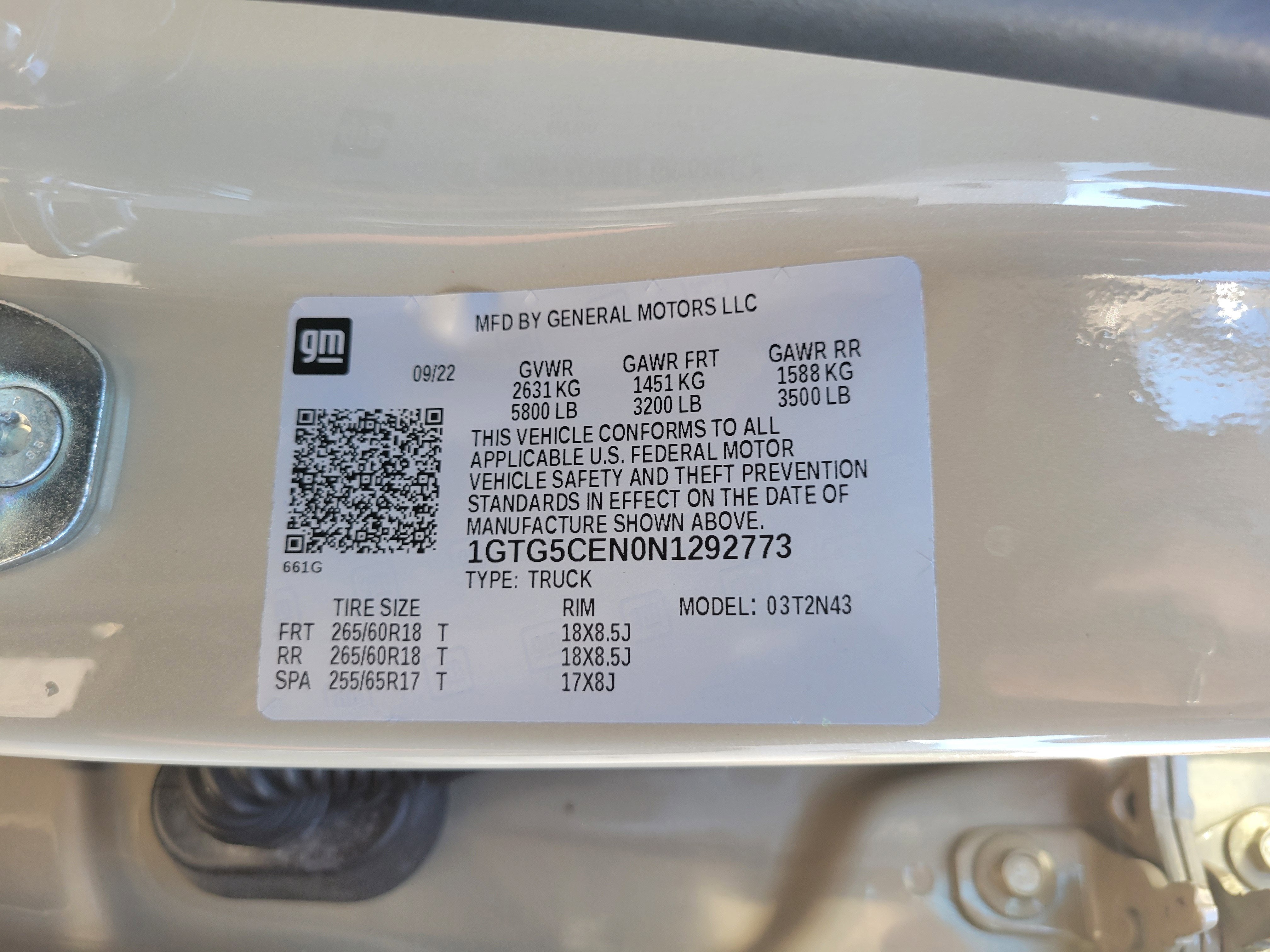 - 17" 255/65R17 all-season, blackwall spare tire