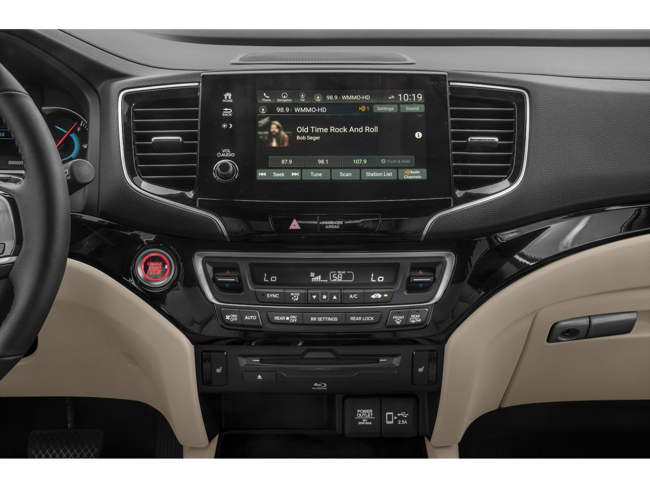 - Radio: 590-Watt Premium Audio System -inc: 10 speakers, subwoofer, Bluetooth HandsFreeLink and streaming audio, MP3/auxiliary input jack, Radio Data System (RDS), Speed-sensitive Volume Compensation (SVC), 2.5-amp USB charging port (1 port in center console/2 ports on 2nd-row), 8" display audio w/high-resolution touch-screen and customizable feature settings, HondaLink, CabinControl remote compatibility, Apple CarPlay integration, Android Auto integration, SMS text message function, SiriusXM (SiriusXM requires a subscription after any trial period, If you decide to continue your SiriusXM service at the end of your trial subscription, the plan you choose will automatically renew and bill at then-current rates until you call SiriusXM at 1-866-635-2349 to cancel, See our customer agreement for complete terms at www.siriusxm.com, Fees and programming subject to change, Available in the 48 contiguous United States and D.C, SiriusXM and all related marks and logos are trademarks of SiriusXM Radio Inc.), HD radio, 2.5-amp USB smartphone/audio interface (1 port in front console), Honda Satellite-Linked Navigation System w/voice recognition and Honda HD digital traffic, advanced rear entertainment system w/10.2" high-resolution screen, Blu-Ray player, built-in streaming apps and 2 wireless headphones, HondaLink subscription services, Wi-Fi hotspot capability, multi-zone audio and CabinTalk In-Car PA system through headphones and speakers