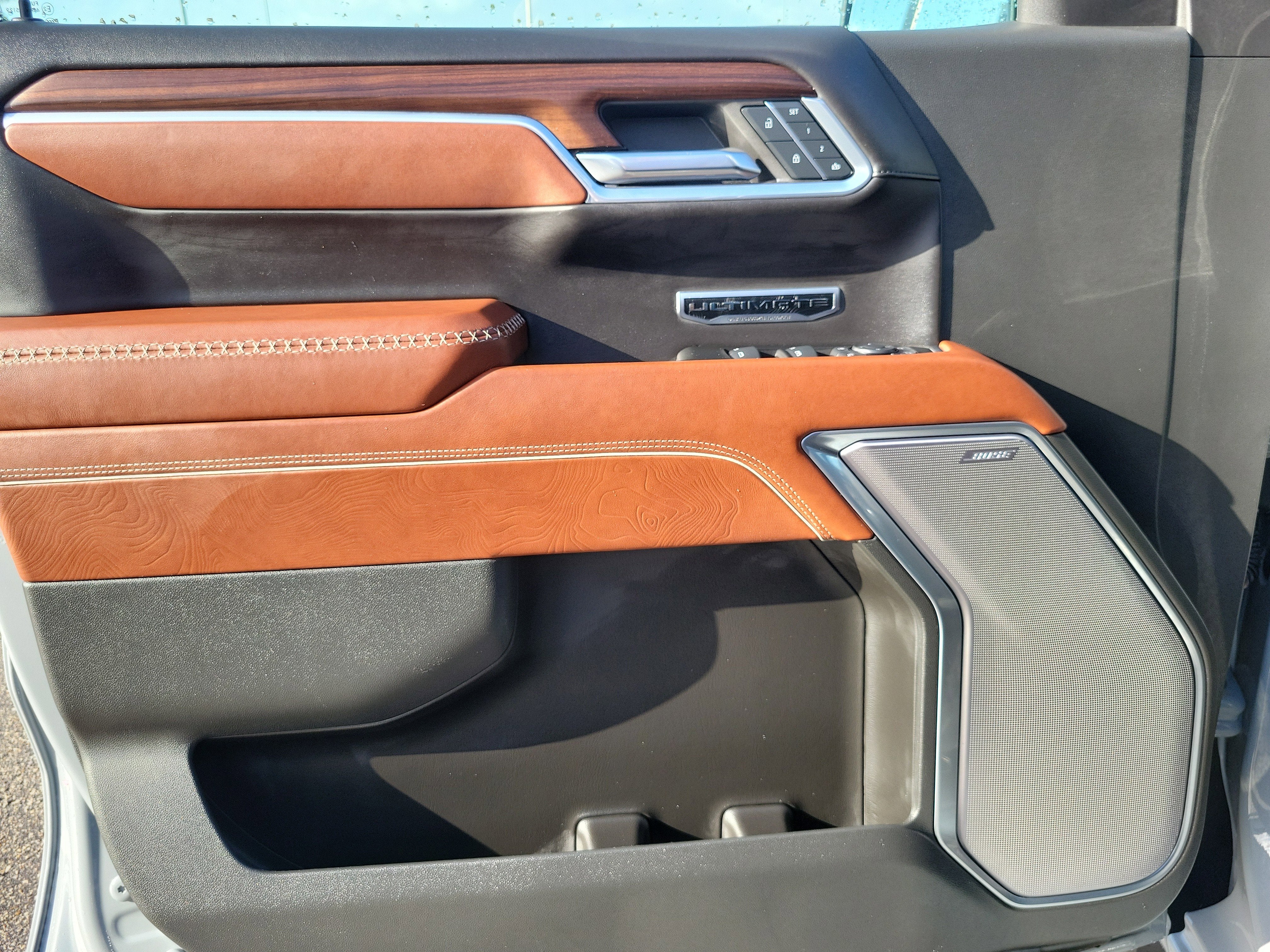 Preferred Equipment Group 5SB (120-Volt Bed Mounted Power Outlet, 120-Volt Interior Power Outlet, 2 Charge/Data USB Ports Inside Center Console, 2 Type-C Charge-Only Rear USB Ports, 2 USB Ports, Auto-Locking Rear Differential, Bed View Camera, Bose Premium Series w/12-Speaker System, Chrome Recovery Hooks, Color-Keyed Carpeting Floor Covering, Deep-Tinted Glass, Electric Rear-Window Defogger, Floor-Mounted Center Console, Front Rain-Sensing Wipers, GMC Connected Access Capable, HD Surround Vision, Heated 2nd Row Outboard Seats, Heated Driver & Front Outboard Passenger Seating, Heavy-Duty Air Filter, Hill Descent Control, Hitch View, In-Vehicle Trailering System App, Integrated Trailer Brake Controller, Keyless Open & Start, LED Cargo Area Lighting, Multicolor 15" Diagonal Head-Up Display, MultiPro Tailgate Audio System by Kicker (LPO), OnStar & GMC Connected Services Capable, Perimeter Lighting, Power Door Locks, Power Front Passenger Windows w/Express Up/Down, Power Front Windows w/Driver Express Up/Down, Power Rake & Telescoping Steering Column, Power Rear Windows w/Express Down, Power Sliding Rear Window w/Rear Defogger, Power Sunroof, Push Button Start, Rear Cross Traffic Braking, Rear Pedestrian Detection, Rear Wheelhouse Liners, Remote Vehicle Starter System, SiriusXM w/360L, Spray-On Pickup Bedliner w/Denali Logo, Steering Wheel Audio Controls, Theft Deterrent System (Unauthorized Entry), Trailer Camera Provisions, Trailer Side Blind Zone Alert, Trailer Tire Pressure Monitor System, Ultrasonic Front & Rear Park Assist, Universal Home Remote, Vader Chrome Header w/Signature Denali Grille, Ventilated Driver & Front Passenger Seats, Wi-Fi Hotspot Capable, and Wireless Charging), Trailering Package (Hitch Guidance), Sierra 1500 Denali Ultimate, 4D Crew Cab, EcoTec3 6.2L V8, 10-Speed Automatic, 4WD, Thunderstorm Gray, Alpine Umber Leather, 12 Speakers, 16-Way Power Driver Seat Adjuster w/Lumbar, 16-Way Power Passenger Seat Adjuster w/Lumbar, 170 Amp Alternator, 3.23 Rear Axle Ratio, 4-Wheel Disc Brakes, ABS brakes, Adaptive suspension, Air Conditioning, Alloy wheels, AM/FM radio: SiriusXM with 360L, Apple CarPlay/Android Auto, Auto High-beam Headlights, Auto-dimming door mirrors, Auto-dimming Rear-View mirror, Automatic temperature control, Brake assist, Buckle to Drive, Bumpers: body-color, Carbon Fiber Composite Bed, Compass, Delay-off headlights, Denali Premium Suspension w/Adaptive Ride Control, Driver door bin, Driver Memory, Driver vanity mirror, Dual Active Exhaust, Dual front impact airbags, Dual front side impact airbags, Electronic Stability Control, Emergency communication system: OnStar and GMC connected services capable, Enhanced Automatic Emergency Braking, Following Distance Indicator, Forward Collision Alert, Front anti-roll bar, Front Bucket Seats, Front Center Armrest, Front dual zone A/C, Front fog lights, Front Pedestrian Braking, Front reading lights.