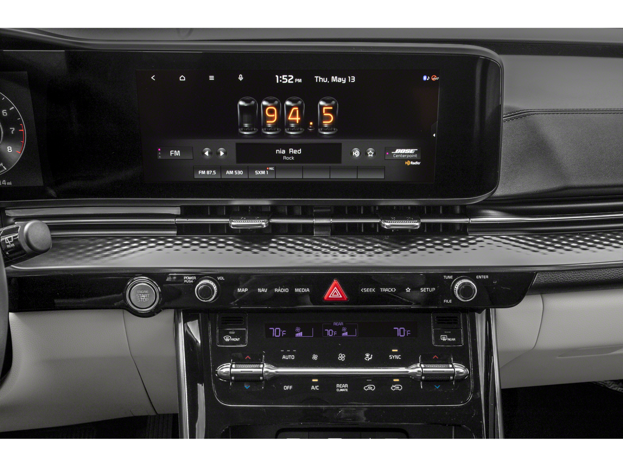 - Radio: AM/FM/HD Audio System -inc: 12-speaker Bose premium audio (exterior amp, and subwoofer), 12.3" display, navigation system, Android Auto, Apple CarPlay, SiriusXM, Bluetooth, modem,1 media port and WiFi hotspot