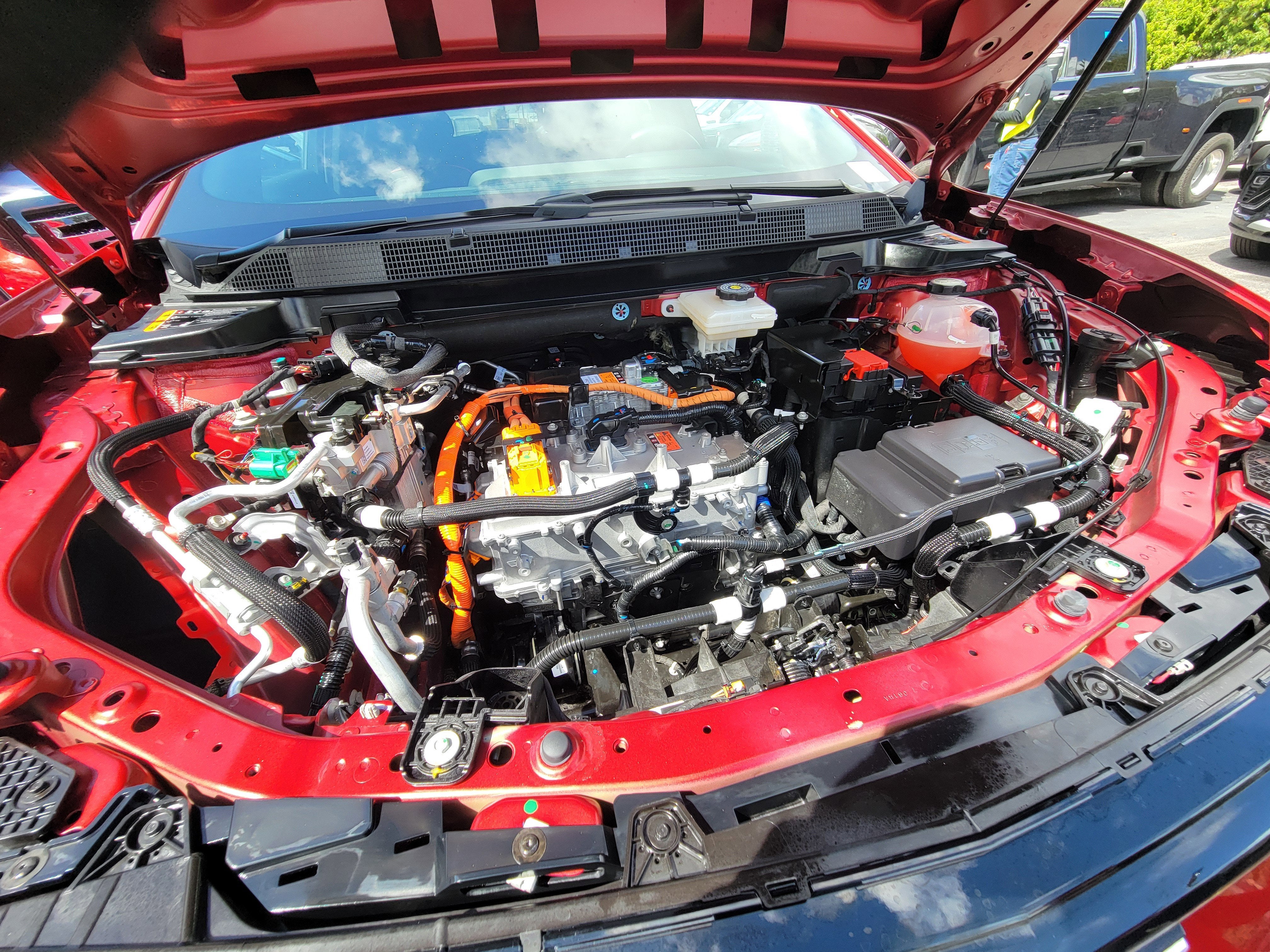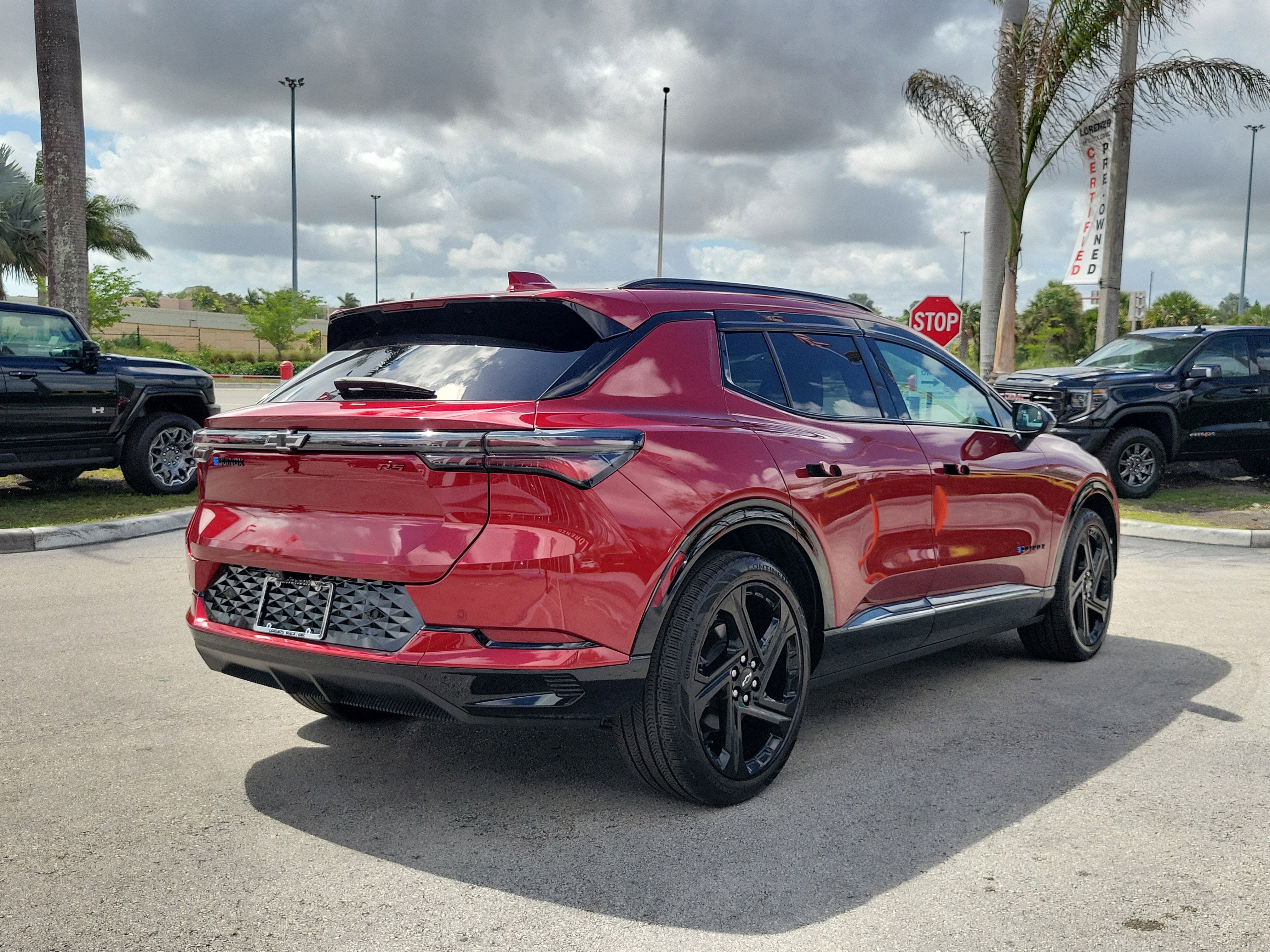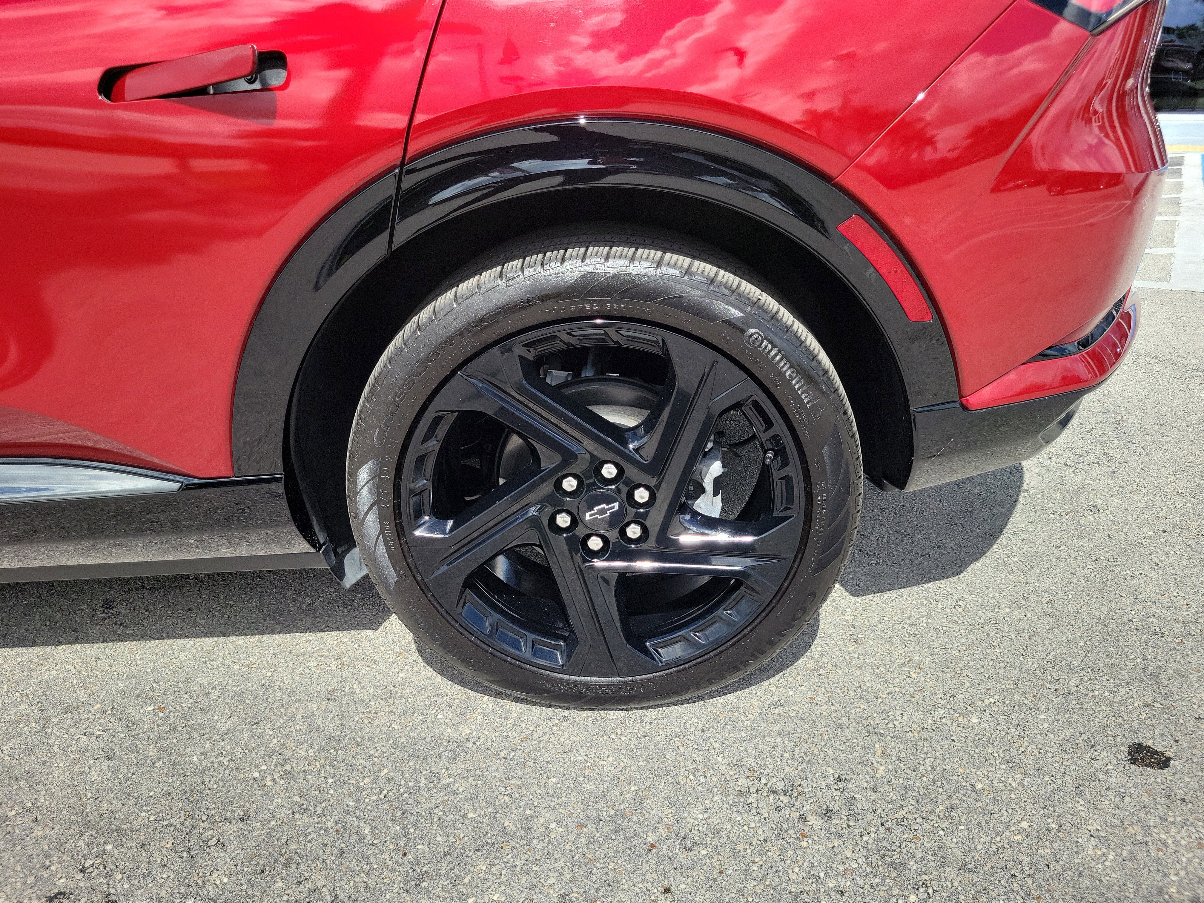 All-Weather Liner Package (All-Weather Cargo Area Liner and Contoured All-Weather Floor Liner), Preferred Equipment Group 2RS, Equinox EV RS, 4D Sport Utility, Electric Motor, 1-Speed Automatic, FWD, Radiant Red Tintcoat, Black With Red Accents Leather, 4-Wheel Disc Brakes, 6 Speakers, 6-Speaker Audio System Feature, 6-Way Manual Front Passenger Seat Adjuster, 8-Way Power Driver Seat Adjuster, ABS brakes, Air Conditioning, Alloy wheels, AM/FM radio: SiriusXM with 360L, Auto High-beam Headlights, Auto-dimming Rear-View mirror, Automatic temperature control, Brake assist, Bumpers: body-color, Compass, Delay-off headlights, Driver door bin, Driver vanity mirror, Dual front impact airbags, Dual front side impact airbags, Dual Level Charge Cord, Electronic Stability Control, Emergency communication system: OnStar and Chevrolet connected services capable, Evotex Seat Trim, Four wheel independent suspension, Front anti-roll bar, Front Bucket Seats, Front Center Armrest, Front reading lights, Fully automatic headlights, Heated door mirrors, Heated Driver and Front Passenger Seats Cushion and Seatback, Heated front seats, Heated steering wheel, Illuminated entry, Knee airbag, Low tire pressure warning, Navigation system: Google built-in compatibility (select service plan required, terms and limitations apply), Occupant sensing airbag, Outside temperature display, Overhead airbag, Overhead console, Panic alarm, Passenger door bin, Passenger vanity mirror, Power door mirrors, Power Driver Lumbar Control, Power driver seat, Power Liftgate, Power steering, Power windows, Radio: 17.7" Diagonal Advanced Color LCD Display, Rear anti-roll bar, Rear reading lights, Rear seat center armrest, Rear window defroster, Rear window wiper, Remote keyless entry, Security system, SiriusXM with 360L Trial Subscription, Speed control, Split folding rear seat, Spoiler, Sport steering wheel, Steering wheel mounted audio controls, Telescoping steering wheel, Tilt steering wheel, Traction control, Trip computer, Turn signal indicator mirrors, Variably intermittent wipers, and Wheels: 21" Black Painted Aluminum. Recent Arrival!