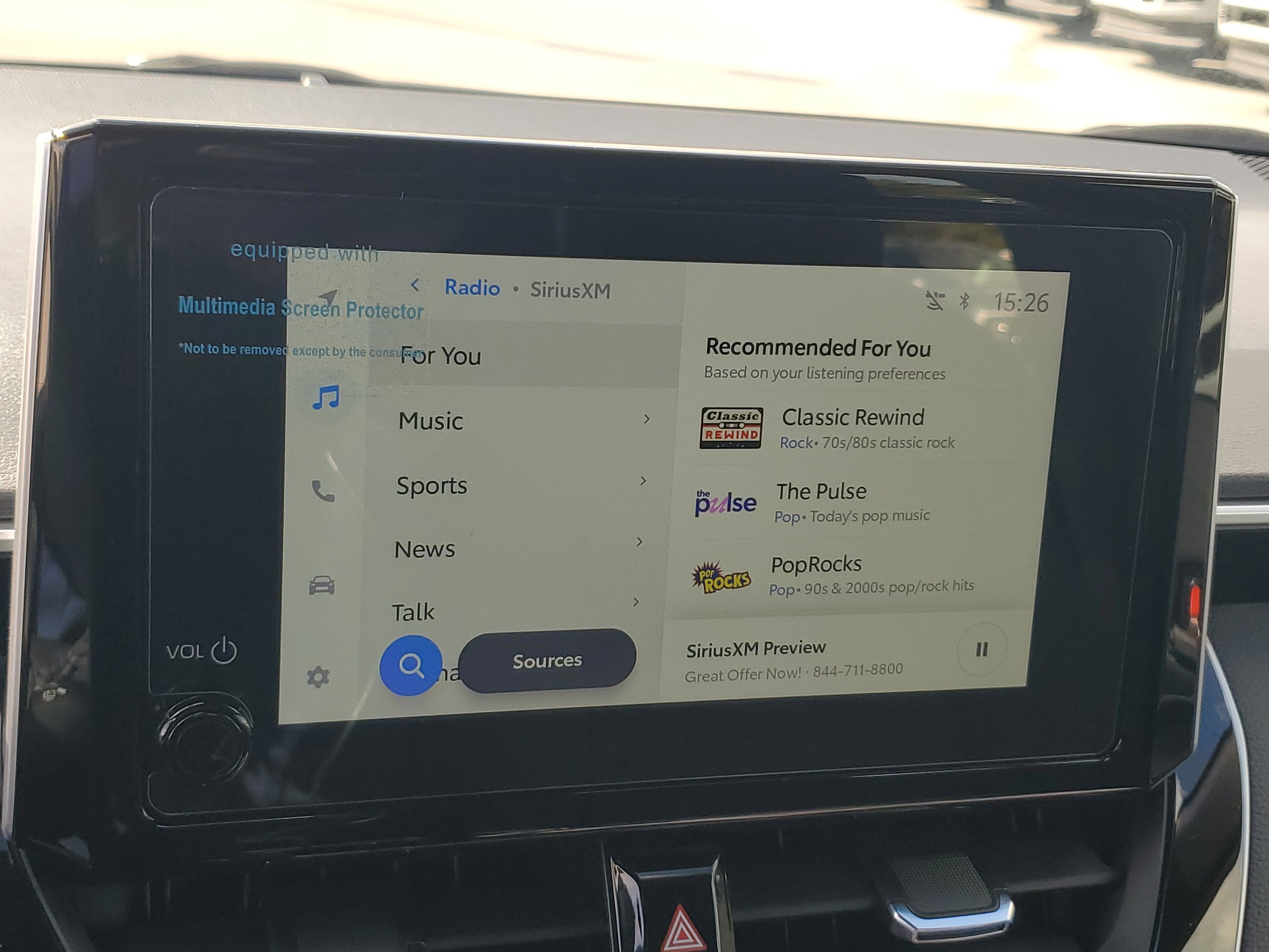 - Radio: 8" Toyota Audio Multimedia -inc: touchscreen, 6 speakers, wireless Apple CarPlay and Android Auto compatibility and SiriusXM w/3-month trial subscription, See toyota.com/connected-services for details